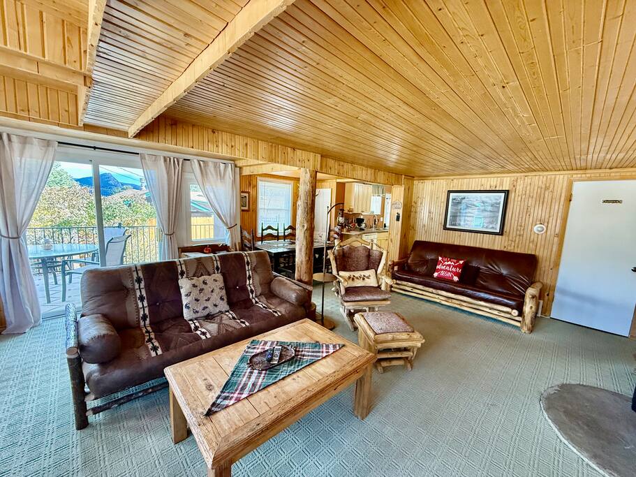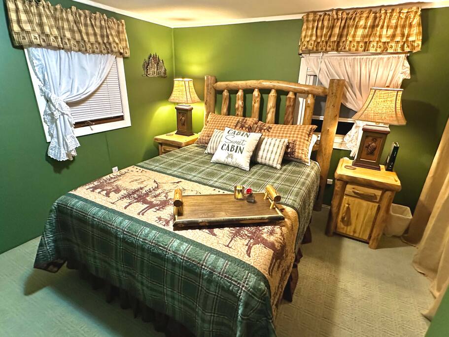 Guests have access to the entire cabin and front patios and hot tub. Please, make yourself at home. Only the unfinished locked basement and 2 locked owners closets in the cabin is not included in the rental. Free parking is provided in the driveway. The driveway is shared with our next-door long-term tenant. 2 vehicles are allowed per cabin. There is also parking along the road that can be used during adverse weather conditions. Check in is 4pm or later. Check out is 10am or earlier. (Early check in and late check out is not available.)