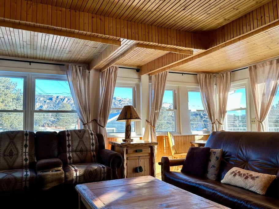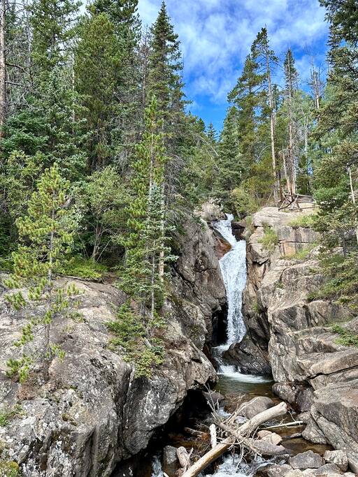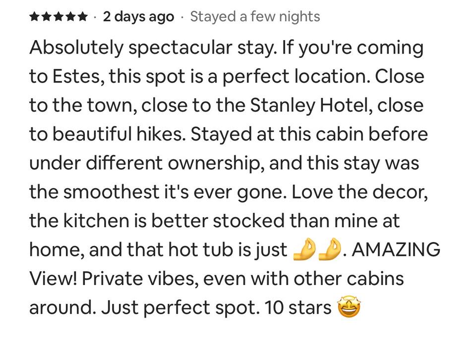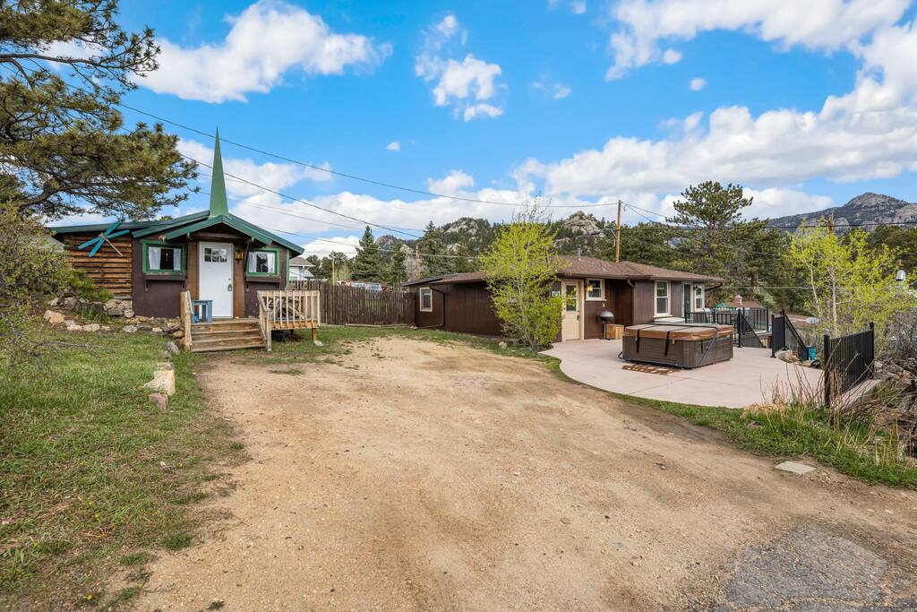 If the mountains are calling and you must go, let this historic 100-year-old lovingly renewed cabin be your home base for your upcoming Estes Park & RMNP stay. The cabin sits in the ❤️ of Estes between downtown & the Stanley; 5-min walk to both & 5-min drive to RMNP. Features star gazing from the private hot tub, mountain/sunrise/wildlife viewing, a cozy yet spacious interior w/gas fireplace, AC, full kitchen, private parking, W/D, & tons of nostalgic rustic charm. True year-round hidden gem.